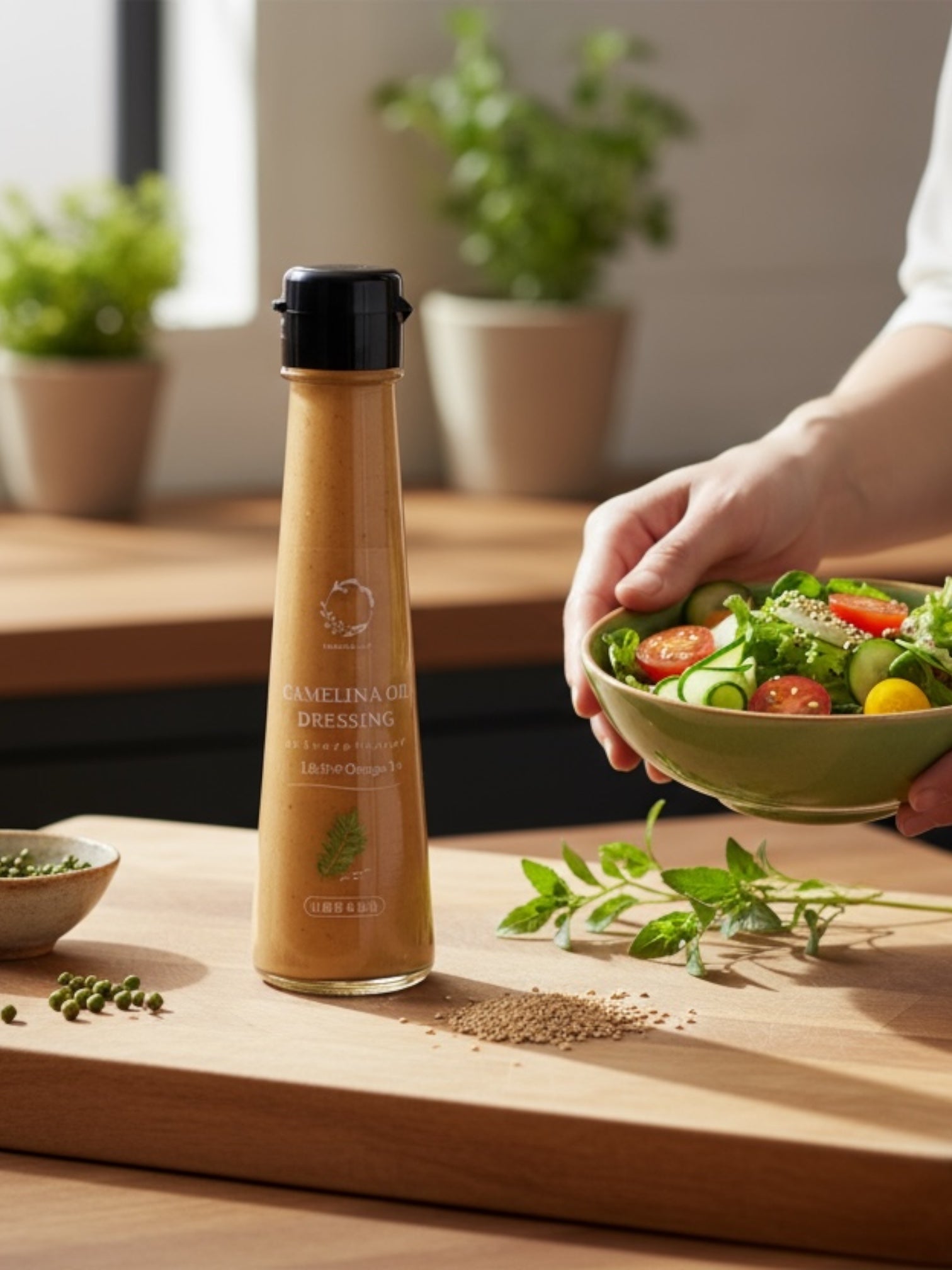 <希少な国産カメリナオイルを使用した、1食分のオメガ3が手軽に摂れるヘルシーなドレッシング>